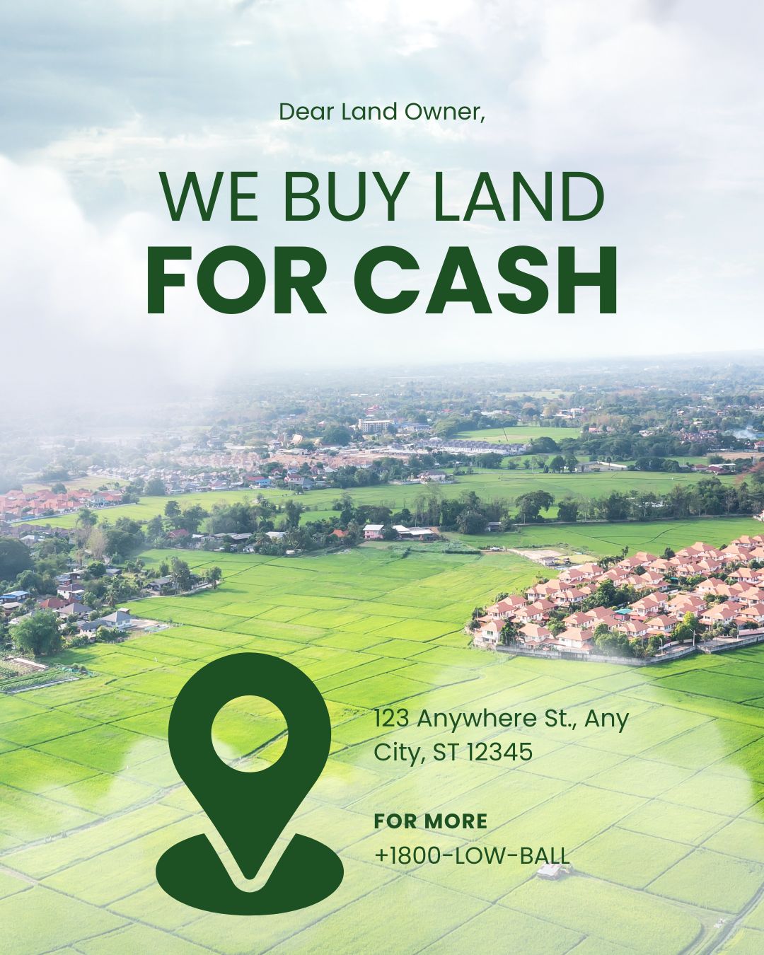 2. Entertain the cash offer. Once you establish the market value for your land, you can compare it with any potential offers. While land investors rarely, if ever, offer market value, the convenience of a quick cash closing may be worth consideration.